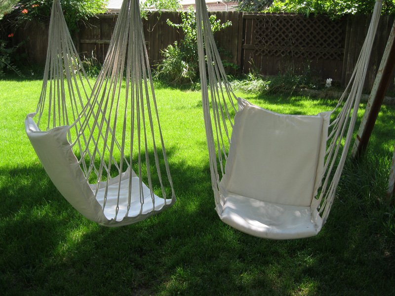 These are the hammock swings I purchased earlier this summer. Since I bought them I have discovered that they are the perfect place for me to let go of my stresses. I'll sit in one, put my feet in the other, close my eyes and drift. Sometimes I drift off to sleep. Other times I just feel the sun on my skin, the breeze in my hair, and listen to birds rustling nearby. My hammock swings are a place of peace. Several times during WorldCon I longed for them. The bracelet Loren gave me is made of exactly the same cotton cord which holds up my swings. These are the chords I often wrap my fingers around while resting. Loren gave me a tangible reminder of something from which I draw strength. He gave me a talisman.