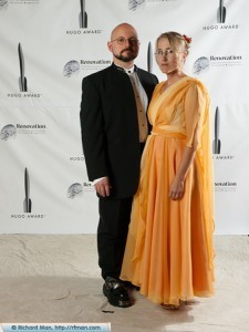 Richard Man was the photographer at the Hugo award ceremony. He has posted all of his photos online where you can see them. I highly recommend wandering through. I believe most of these photos were taken prior to the ceremony, but he also has a page full of ceremony photos. Finally I am able to post a picture of Howard and I dressed up for the Hugo awards.