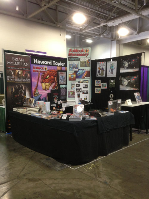 Every show we have something that sells better than expected and something that doesn’t move at all. This year the run away seller was the Shadows Beneath anthology. Halfway through the show we had to go and get more from the Dragonsteel folks. The other delightful surprise was how well our booth-mate’s books sold. Brian McClellan shared our space and he sold out of books on Saturday morning.