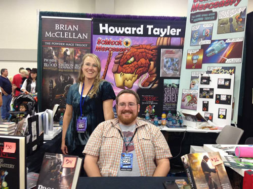 As is usual for Howard and I, our favorite parts were when we get to participate in interesting conversations. Sometimes those happened in small groups at our booth, other times they were when we participated in panels. I was particularly happy that there was a Writing Excuses panel where they didn’t have to record, they just got to talk. Mary was much missed in the conversation.