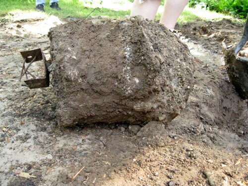 They were big and heavy. But we needed them out before we can use this ground for anything else. One was particularly interesting as they poured the footing right between a concrete pad and a sprinkler pipe. When I first discovered the pipe, I worried that they had poured the concrete around it, but fortunately that was not the case.