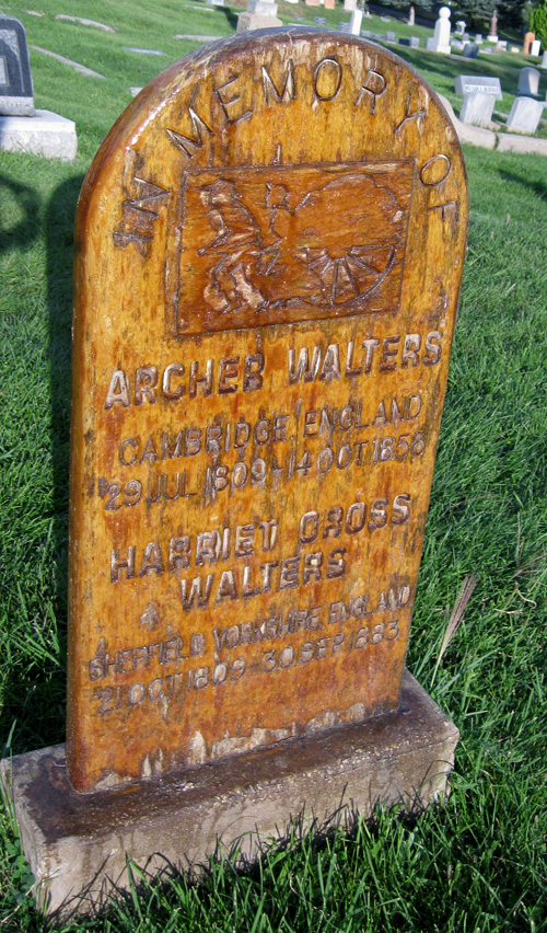 Wood is not an ideal choice either, particularly not when there are sprinklers running constantly to keep the grass green. This family solved the problem by shellacking the wood to protect it. The technique seems to have worked since the marker was put up in 1850.