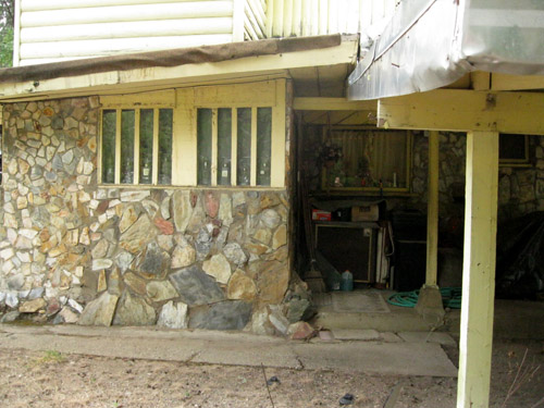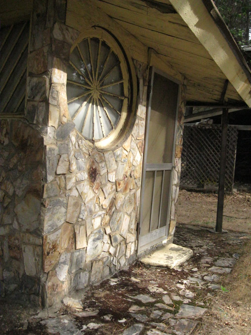 Who ever built it, used local materials and much love in it’s construction. It is created with a combination of local rock, pine logs, concrete, and clapboards. The roof is made out of sheets of airplane metal. There isn’t anything standard about this house.