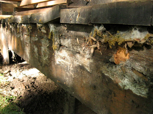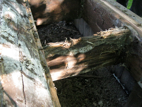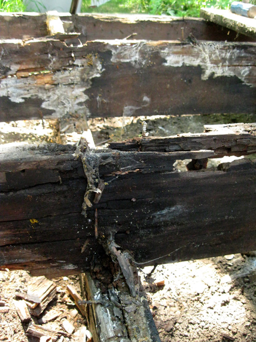 It doesn’t look so bad in that picture. There were an abundance of spiders and bugs as we removed boards, but most of the structure seemed okay. Until you looked close.