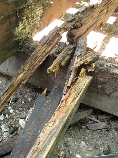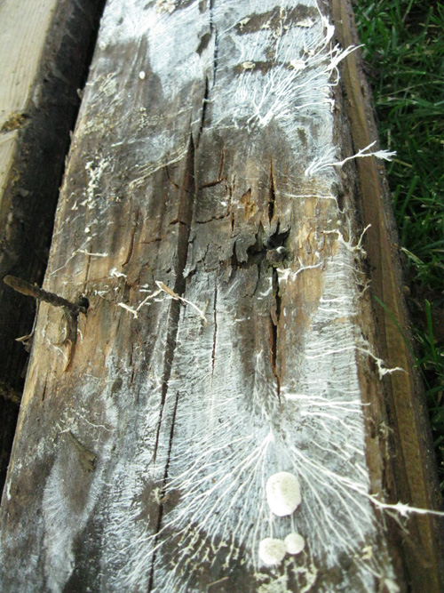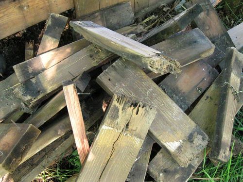 I’d imagined that perhaps I could give all the wood to someone who could use it. But pretty much every board had some kind of rot or fungus on it. When we got all the planks up, the extent of the rot was apparent.