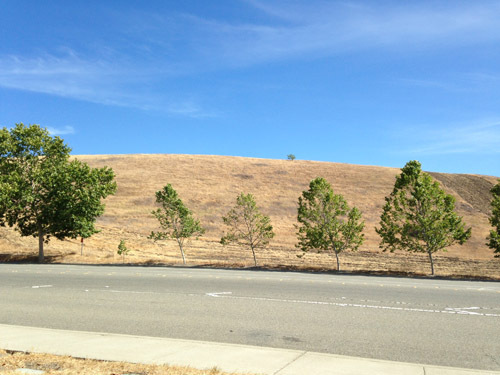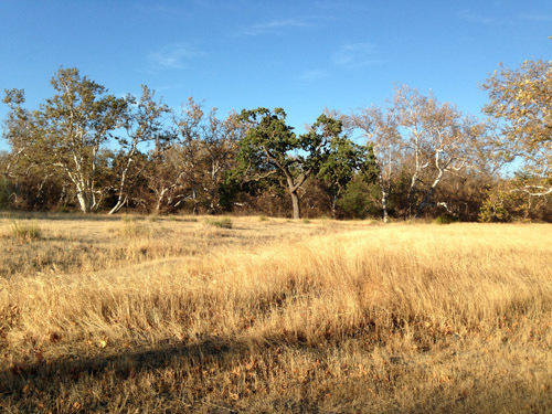 The trees in this photo are big because there is an aroyo right behind them. Aroyo = stream, many things in California have Spanish-based names because of the settlement history of the state.