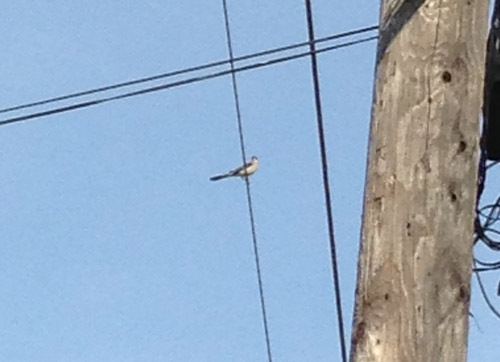 It’s a bird on a telephone wire. There are poles and wires everywhere, at least in my home neighborhood. In more modern developments they probably buried the wires. Or maybe they can’t due to earthquakes. I just know that as a teenage birdwatcher I spent a lot of time staring at birds sitting on wires. This one is a mockingbird. They don’t live in Utah and I miss them. California has lots more birds in more varieties than Utah. I miss that too. But I particularly miss listening to mockingbirds outside my window. I wish I could convince them that Utah is a nice place to live.