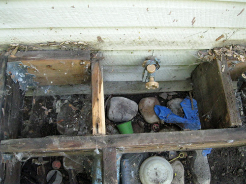 There were spots of dry rot. And every single trim board was partly rotted away at the bottom. You can see where the ends of the boards had dissolved back into dirt.