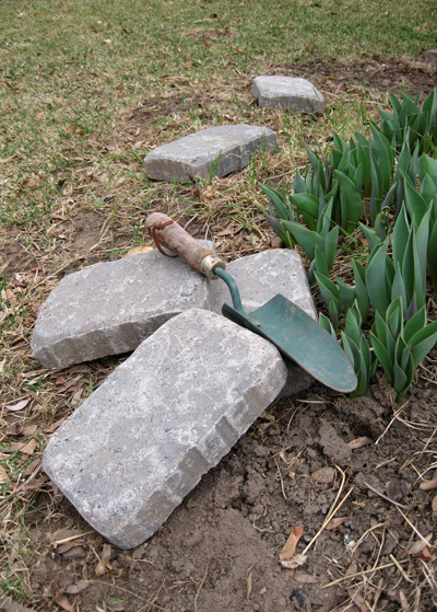 So, I'm not sure if I've got anything usable. Perhaps I'll make a trip to a stone company and spend twenty dollars getting some pretty rocks. However if I want to use the sprouting tulips I need to hurry. They could start blooming as soon as next week. I may try doing some "studio" shots of trowel and cobbles against a drop cloth to see what that yields. In the end I suspect that the cover will be something I pull together, am not completely happy with, but will deem "good enough" because I simply don't have the skills and expertise (nor the time) to make it better. This is one of the things I don't like about self publishing, knowing it could have been better if I had more training.