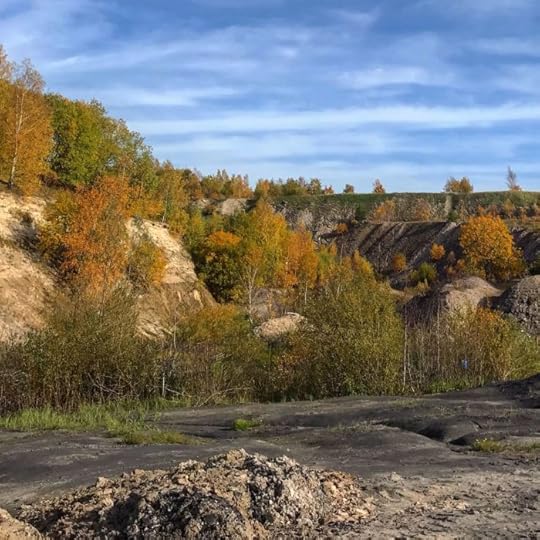 Det var Emma Rehnström som visade växtfossilen i dagbrottet. Strax därefter tittade Grzegorz förbi i cykelaffären. Vilken datum det var minns jag inte, men den första bilden av ett dinosauriespår tog jag den 13 oktober 2018.