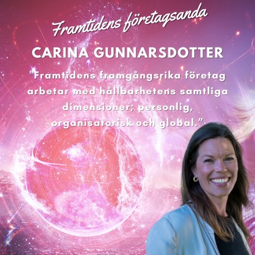 I boken ”Framtidens företagsanda” inspirerar Carina Gunnarsdotter till mer hållbarhet i olika dimensioner och ger dig en kick in i den morgondag vi skapar tillsammans.