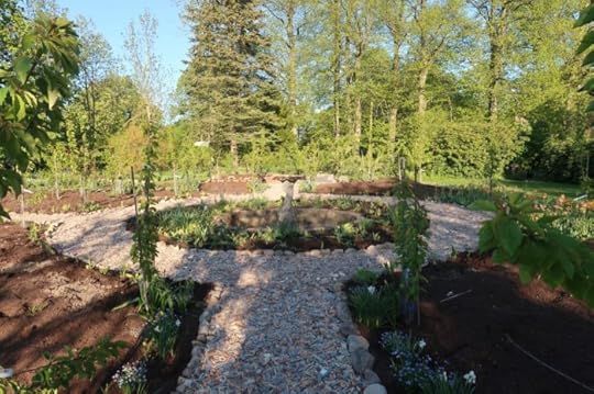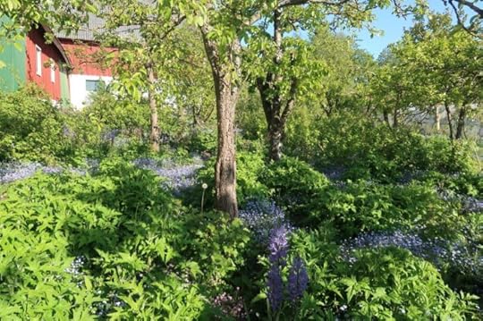 Trädgårdsvandring i Billesholm2014 bestod trädgården i norr av gräsmatta. Det som började med ett hål i gräsmattan för några rhododendron följdes av körsbärsträd, fjärilsbuskar och rosor. Årets projekt är att anlägga damm och dra in vatten. Vi får se hur långt jag hunnit till maj.