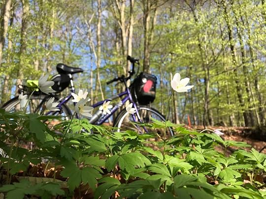 Cykling (på grusväg) till Stenestad park (11 km otroligt vacker cykling i maj, men rejäl uppförsbacke så för den som inte är tränad rekommenderas elcykel.)