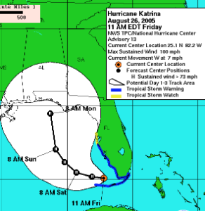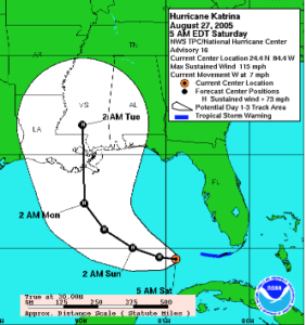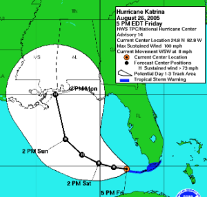 By mid day Friday August 26th, many New Orleanians, including me believed that Hurricane Katrina was heading toward the middle of the Florida Panhandle. Then came the big shock.