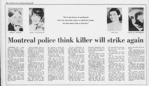 Former Montreal detective – “Why Murders Are Unsolved”, David Johnston, The Gazette, March 9, 1985