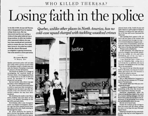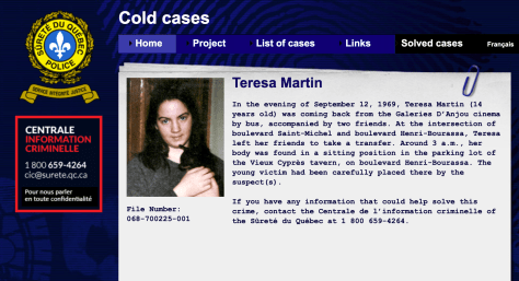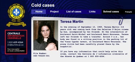 Commendable, but again, something here does not add up. 26 officers assigned full-time to cold cases since 2004, and only 11 cases solved out of over 600 unsolved murders in the province of Quebec under SQ jurisdiction, over 200 of those posted on their cold case website.