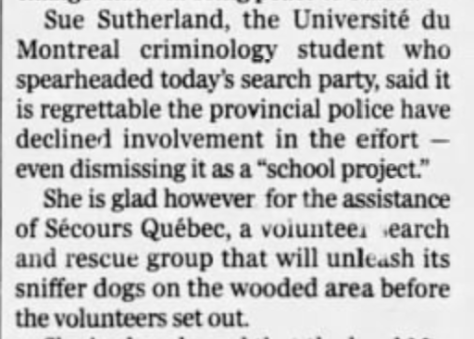 Before moving on to the follow-up article, everything we have discussed so far about the Teresa Martin case is contained in this 1972 Petit Journal article. The paper notes how Quebec police took credit for the Boden cases even though they had the wrong guy and it was actually Western investigators who cracked the case. What happened with the Claudia Beauvais case, and all the incidents connected to the Douglas Memorial Psychiatric Institute in Verdun? What’s really disheartening are the promises made in 1972 about cases we’ve talked about here; Teresa Martin, Alice Pare, Chantal De Montgaillard. Police told family and reporters that they would not give up. If you Google any of those cases, over 50 years later – that’s right, most of these were never solved – you will see police making those same hollow promises. Then there is the question of the “open case”. Back in 2006, in the matter of my sister’s murder, “Chantal Mackels, an SQ spokeswoman, confirmed… the cold case is still an open file in the hands of the investigators.” Ya, it’s open like the box of old comic books in my attic are open – no one’s asking about them, I haven’t looked at them in over a decade, but they’re there should I ever want to catch up on Sad Sack and Turok – Son of Stone. An open case is a box where investigators file exhibits, as long as police shut their mouths no one is going to come asking after them.