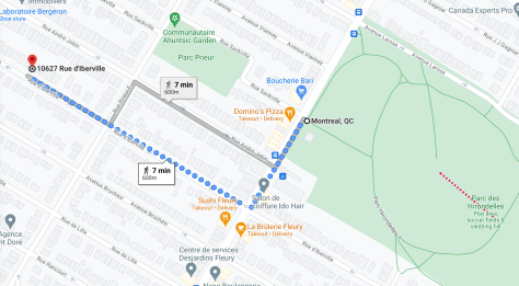 “The porch had the wrought-iron railings that are typical of Montreal. It was raised, like a low balcony, leaving enough space underneath to accommodate the entrance to a basement apartment. Curved steps led up one side, and on the opposite side, the top railing was screwed to a homemade wooden planter full of flowers.