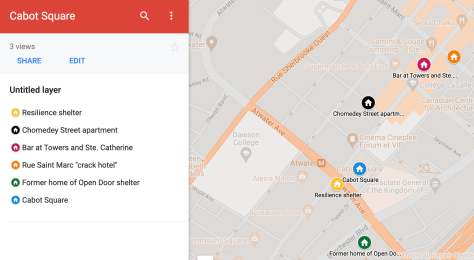 The McDonald’s they are referring to is the one south of Place Emilie Gamelin, and I am well familiar with the area. BAnQ, Montreal’s major library is located north of the parc, so I spend a lot of my time when I’m in Montreal in that area doing research. In fact, that sound you hear at the beginning of the Francine Da Sylva podcast, that’s the sound of metal rigging hitting the side of a flag banner pole outside that McDonald’s. I had supper two times in that McDonald’s over a long weekend. I didn’t go to The Gilded Truffle, I went where the cops and people hang out for two Quarter Pounders with cheese, thank you very much. When I left at dusk, I tried to snap a picture of a girl and her pimp and the guy nearly took my head off. As Christopher Curtis told me, “If [Paré] was hanging around Emilie Gamelin, that’s heroin…. if she went missing, you have to assume she’s dead.” Then futher: