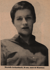 Marielle Archambault, age 20, November 26, 1969 in Montreal: Wayne Boden confessed to the murders of Shirley Audette, Marielle Archambault, and Jean Way, and was sentenced to three life terms.