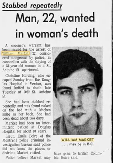 Claudia Beauvais, age 22, July 8, 1969 in Verdun: Beauvais was from the Kahnawake native reserve. Because she was First Nations Beavais’ case generated little media attention. Initially a 34-year-old taxi driver from Toronto was held for questioning when he was seen lurking near the wooded area where Beauvais was found. Later a 35-year-old Montrealer became a suspect. By mid-July, police gave a statement, “The condition of the victim’s body leads us to believe we are dealing with a mentally-deranged person who may strike again.” In 1973 attention turned to an offender named William “Bill” Market (also known as Bill Mason and Bill Reid), suspected of killing three women since 1969. Market went to trial for the 1973 stabbing death of Christine Harding in her St. Antoine street apartment. Harding had been a patient at the Douglas Memorial Psychiatric Institute in Verdun. Market was originally from Verdun, and suspected of the death of Beauvais, and was set to stand trial for her murder, but the Crown ultimately withdrew the charge. Claudia Beauvais murder remains unsolved.