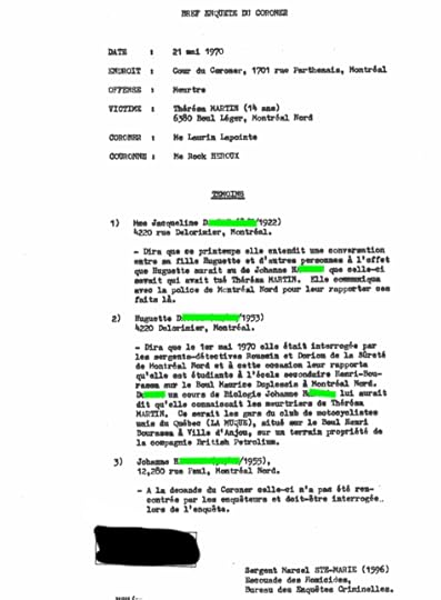 May 21, 1970 interrogation of two witnesses by Coroner Laurin Lapointe and Crown Attorney Roch Heroux into the murder of Theresa Martin: