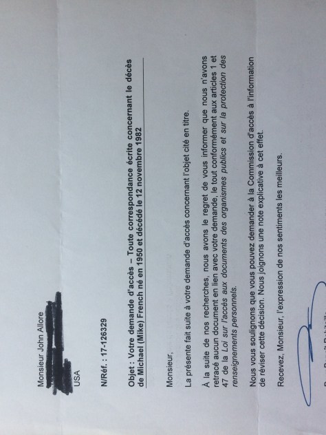 In 2017 a made a FOIA request to the Montreal police for any correspondence concerning Michael French. I’ve forgotten why I was interested in French at that time, but I suspect it had to do with the Sharron Prior case. The SPVM had the audacity to respond that they didn’t have any information concerning Michael French, such are the abuses of ‘freedom of information’.