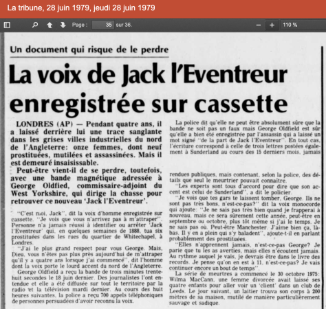 “LONDON (AFP) – A woman may be the mysterious assassin who, like Jack the Ripper, killed and maimed seven people, including six prostitutes, in twenty-seven months in Yorkshire. Local newspapers reported on Thursday that psychiatrists asked to paint a psychological portrait of the killer believe he may be female. The experts formulate two hypotheses on this subject: