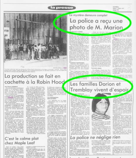 When the time is right, I’ll tell you what happened to Dorion and Tremblay. Not now. I need a break from the 1970s.