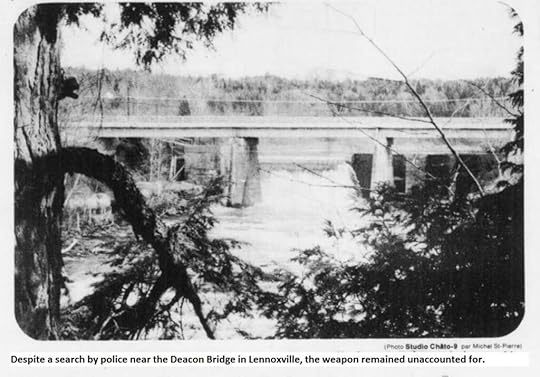 Sgt. Maurice Corbeil of the SQ testified that six police officers combed the trail, fields, undergrowth, and brush in the area on July 6 without finding any spent cartridges. Officer Ronald Cyr said his scuba diving squad searched on August 8 and 9, and again on November 27 and 28, and did not turn up any weapons above or below the Deacon Bridge. Cpl. André Vallée added that further searches of the river on September 18 and 19 recovered a piece of weight with dimensions equivalent to a firearm thrown off the bridge by Constable Noël Bolduc in an experiment to see how far a rifle might travel in the Coaticook running water. Meaning the dummy rifle was recovered, but not an actual rifle, because Fernand Laplante had never disposed of a rifle as Jean Charland had testified.