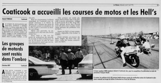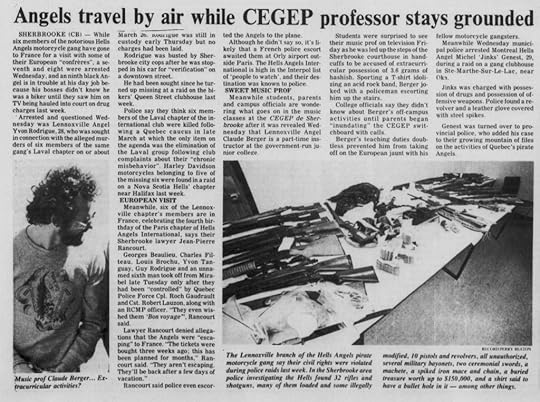Under cross-examination, William Pettigrew mentioned that Officer Noël Bolduc of the Sûreté du Québec had shown him a series of mugshots. Pettigrew did not identify Laplante or Charland who were both in the deck. Bolduc suggested that this meant Pettigrew was unsure of exactly who was in his cab the morning of July 6, but I believe it meant something else. Pettigrew was a reluctant witness. He probably had no desire to finger a member of the Gitans and his accomplice. Because everyone in that court room knew exactly who was tall, with long ash-blond hair and sideburns, and a tattoo on each of his arms. Attorney Jean Pierre Rancourt knew it. The Crown, the Judge, the officers of the Sûreté du Québec, they all knew it too. It was Regis Lachance.