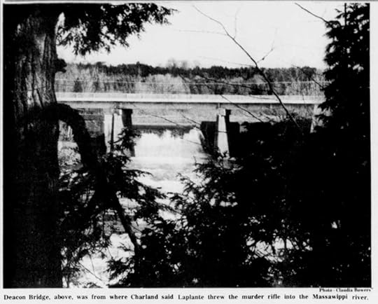 Laplante returned, and he and Charland drove off. When the Cadillac reached the Deacon Bridge at Route 143, Laplante threw the rifle into the Coaticook River. Laplante told Charland to abandon the Cadillac at the Lennoxville Golf Club. Laplante and Charland then headed toward the town of Lennoxville on foot.