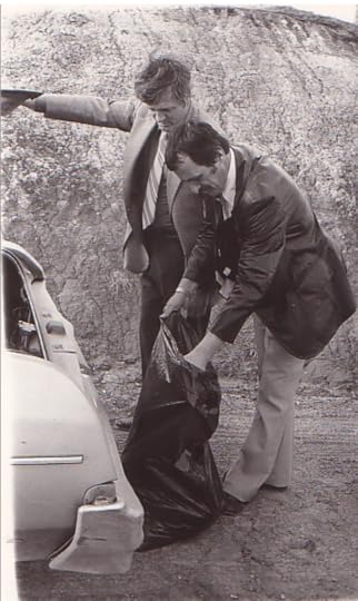 There’s a second photo from that morning – Good Friday, April 13, 1979 – the two agents standing next to a tree where Theresa’s body lay, pretending to have a conversation. The photos are staged; the detectives aren’t really doing anything, they’re not really investigating.
