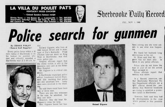 On Halloween night 1968, the manager of a King street Kentucky Fried Chicken store was gunned down outside his home in Sherbrooke Quebec. Rolland Giguere’s death was the only murder recorded in Sherbrooke in 1968, and the oldest unsolved murder on record in the city.