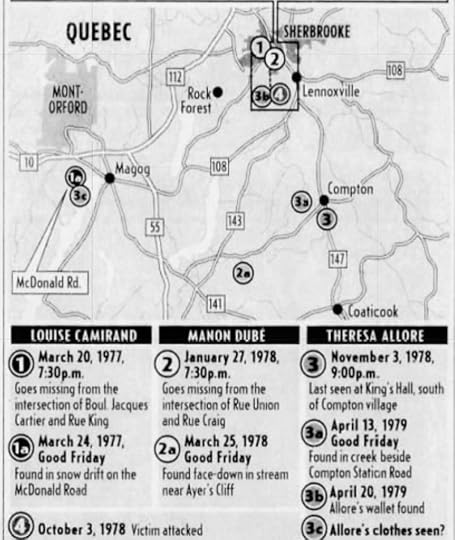 From a broader perspective, I can tell you that some of this work is being done to guide police in their investigations. This is not rocket science. Regarding the 1968 murder of Rolland Giguere, we know that a suspect in his 60s was interviewed in the 2000s. And we have discussed in Folie a Deux how an older offender may have mentored a younger offender(s) in some of the cases from the ’70s. And there is a family with ties to two murders that span generations, the Charlands. You don’t have to be Sherlock Holmes to realize that the Surete du Quebec might want to examine the file of Rolland Giguere; never mind that it crosses agency jurisdiction, the SQ and the Sherbrooke Police. Giguere is not your case, but there very well may be answers there to the cases you are trying to solve in this region. Get it?