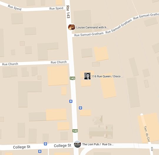 For me it is interesting that it lies in between the Georgian Hotel and the Lion Pub. Theresa frequented the Lion, Louise Camirand was known to hang out at the Georgian. And right in the middle we have this establishment that we know was frequently the target of police raids. Also note that the corner of College and Queen (here marked 143, we often forget Queen was in fact route 143 (as King was route 112)) was the site of various sexual assaults in the late ’70s and early ’80s. Also note rue Speid, the site of Douglas Patrick’s original canteen.