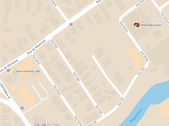 This third map is interesting. For a long time I’ve known that the Sherbrooke Hussars were located up on Belevedere. But what I didn’t know – and again, this was in the CECO report – was that the Gitans MC were just up the block from the Hussars at their house at 584 Rue de Montréal: