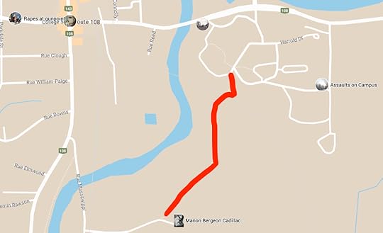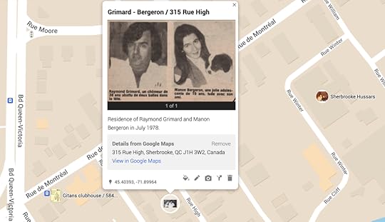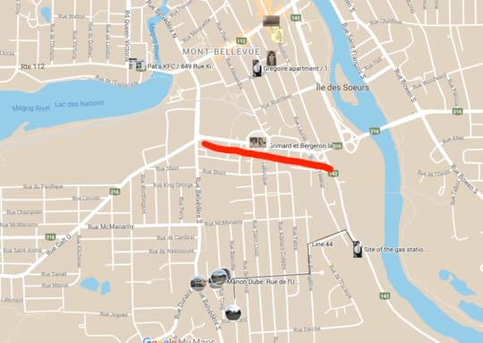 This is also interesting. I knew that Luc Gregoire had once robbed a gas station on route 143 (route 143 also become rue Wellington). When I went to plot it, it came out exactly at the La Tribune proposed getaway route from the Manon Dube case: