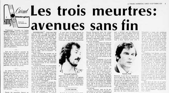 “Les trois meurtres: avenues sans fin”, La Tribune, 16 Septembre, 1978