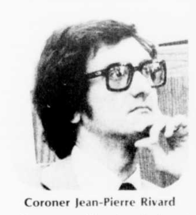 À la fin de l’année, Jean-Pierre Rivard annonce de manière inattendue qu’il quitte ses fonctions de coroner à compter du 31 décembre 1978. Rivard qualifie le travail du coroner « d’ingrat », et dans son annonce, La Tribune rappelle au public que « un coroner travaille toujours dans les coulisses de la mort ». Peut-être un reproche à Rivard – et à ceux qui tiraient ses ficelles – qu’il était devenu trop le centre d’attention. Un coroner au Québec était souvent un avocat, rarement un professionnel de la santé. Rivard n’était ni l’un ni l’autre, apprenant le métier alors qu’il était notaire professionnel avant de sombrer dans l’obscurité.