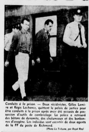By now you should be all wondering, who was this Fernand Laplante? He wasn’t any mother nature’s son. Laplante certainly was no stranger to the Sherbrooke criminal underworld. In 1965, at the age of 20 he served a six month sentence at St. Vincent de Paul penitentiary for the burglary of a Coaticook garage. In 1969 he received another two years for breaking and entering. Apparently the charge never stuck. In 1970 Laplante and his partner, Gaston Brochu were caught red-handed with $27,000 worth of mens clothing from a Magog haberdashery stashed in the trucks of their cars. In 1971 he attempted to burgle the home of a small arms collector, again in Magog. By 1974 Laplante had racked up fifteen convictions when he was again arrested for attempting to steal a safe from the Felix market in Sherbrooke. Robbery, burglary, breaking and entry; but not murder.