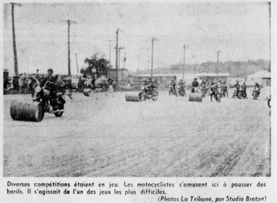 In a “call and response” that could have only happened through La Tribune’s encouragement, the following spring, May 1970, the Cowansville municipal police honored two Gitans club members. Robert Ménard, secretary of the Cowansville chapter, was named “gentleman biker of 1969”. An honorable mention was given to club president, Claude Levesque. The Cowansville chief of police noted he was considering organizing some motorcycle competitions, which would be seen as sign of cooperation between bikers and police. That summer such an event did take place, in Sherbrooke, of course: