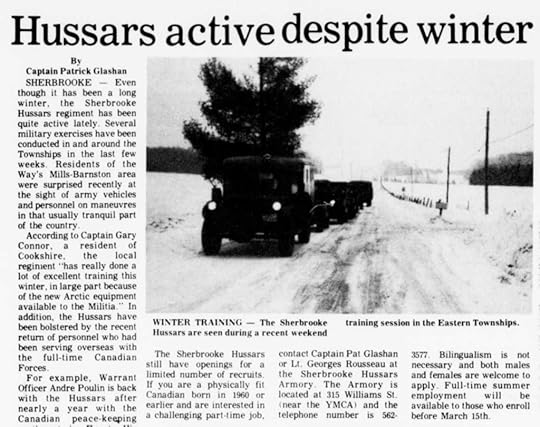 And about that theory which was discussed in the last post concerning the death of Manon Dubé. A former member of the Sherbrooke Hussars contacted me and confirmed that this was the case. The army reserve unit would regularly run practice exercises throughout the Townships. He described one of the activities, “We had a bridge reporting drill that meant getting out of the Jeeps and crawling around to look underneath. I looked at plenty of culverts playing the game.” He even provided a photo of the reservists on exercise in 1979 near Ayer’s Cliff, which is a 4 minute drive from the Dubé dump site.
