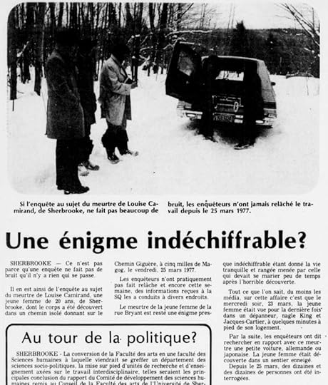 Enigme indéchiffrable?En octobre 1977, les pistes se tarissant, La Tribune publie un article sur l’affaire Camirand la qualifiant d’« énigme indéchiffrable ». L’article assurait au public que “ce n’est pas parce qu’une enquête ne fait pas de bruit qu’il ne se passe rien.”, et se vantait de la façon dont la police avait interrogé “des dizaines et des dizaines” de personnes, ce qui pour moi ne semble pas si impressionnant quand on Je parle du viol brutal et du meurtre d’une jeune de 20 ans. Ce serait l’une des dernières mises à jour de la police sur l’affaire Camirand avant que le public ne soit endormi, pour être réveillé 25 ans plus tard avec la série Who Killed Theresa dans The National Post.