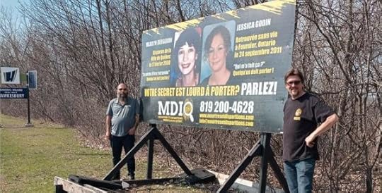 Hawkesbury is interesting. Last spring, Stephane Luce’s group, Meurtres et Disparitions Irrésolus du Québec – MDIQ put up a billboard in Hawkesbury for information concerning the 2011 disappearance of Marilyn Bergeron. Although she lived in Montreal, and was last seen near Quebec City, information has come forward suggesting Marilyn might have actually been held captive in the Hawkesbury region as part of a sex trafficking ring. Now Gaston Lapage is a member of MDIQ, and resident of Hawkesbury who recently started an Ontario chapter of MDIQ. Recently Gaston put up a similar billboard on his brother’s land in nearby Fournier, Ontario looking for information on the death of Jessica Godin, victim of a hit-and-run in 2011.