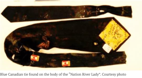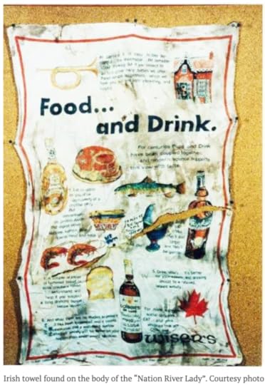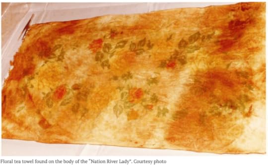 In 1991, police release more information, practically giving away the store in hopes of identifying the Nation River Lady. Police reveal that a small piece of curtain rod was impaled under her armpit, probably from the result of a struggle. Towels were wrapped around her head, one being a distinctive tea towel from Ireland which lead investigators to believe she was English-speaking. Blood stains were found on the north side of the 417 bridge, which lead investigators to believe she was dumped off the bridge and the car was traveling east to west. The neckties used to bind her were made in Montreal and sold in Quebec and Ontario.