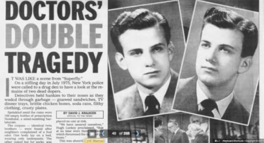“Many people I spoke with after the twins died felt that there was something mystical about Cyril’s behavior and suggested that he had been, in effect, almost drawn against his will to share his brother’s fate. It made me realize that some primitive terror of twins still lurks in contemporary man. We have come eons away from the kinds of superstitions that drove aborigines of Australia to murder one or even both of a twin set at birth, that prompted some West African tribes to kill not just twin infants but the women who had given birth to them. But some of us (perhaps the Marcus brothers themselves) nevertheless attribute to twins superhuman sensitivities like extrasensory perception or the ability to communicate without words. And when these doubles, born on the same day, die at the same time, their fate arouses in us an almost primordial anxiety.