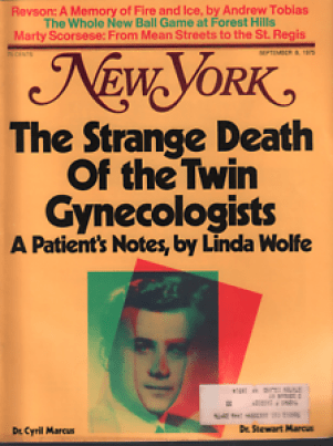 Old WorldIn the fall of 1975, Linda Wolfe wrote an article for New York magazine called, “The Strange Death of the Twin Gynecologists”. Wolfe was an essayist, and is best known for her book, Wasted: The Preppie Murder, about the 1986 murder of 18-year-old Jennifer Levin, who was found strangled in Central Park adjacent to the Metropolitan Museum of Art. Robert Chambers was quickly arrested, the two had once dated, and had been seen together the prior evening at Dorian’s Red Hand, a bar near the museum at 84th Street. Wolfe had once been a patient of Stewart Marcus. She had experienced first hand the doctor’s odd behavior. During one visit, Stewart Marcus began to “shout and scream” at Wolfe, until her husband intervened and the couple stormed out of his office.