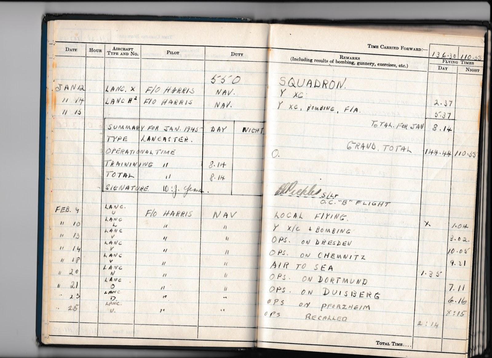 Log discrepancies were not uncommon, particularly since crew did not bring their logs with them on flights and the information contained within them usually came second or third-hand to whatever administrator was completing them on any given day. In some cases, log books were completed after-the-fact by airmen taking details from Squadron records which may or may not have been accurate. It is likely the book was mixed up with a Nielson Crew member as the result of a clerical error.