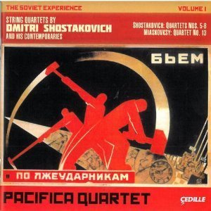A tweet in response to one of mine (about my favourite quartets performing at the moment) warmly recommended the Pacifica Quartet, new to me. And the first instalment of their Shostakovich cycle released last September has got a lot of praise from the critics ("stunning", "electrifying", "one of the top 10 classical recordings of 2011″, etc.). So I sent off for the remarkably cheap double CD. Now I'm bowled over too. Amazing playing. This first release includes the eighth quartet (the most familiar? the most performed?) and this is surely the best performance I've ever heard. Very warmly recommended indeed. I'm not sure I can add "Enjoy!" as these are emotionally wrenching pieces: but yes, electrifying.